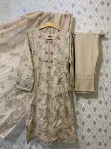 Be the first to review “Baba Posh Slub Linen 3-Piece | Embroidered Shirt + Soft Doria Dupatta” Cancel reply