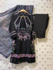 Be the first to review “Baba Posh Slub Linen 3-Piece | Embroidered Shirt + Soft Doria Dupatta”
