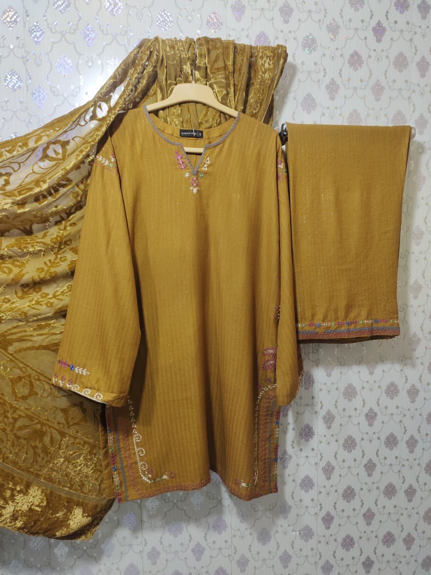 Sadabahar Luxury Dhanak Embroidery 👌3Piece Co-ord’s With Palachi Shwal Stitched Collection 2025