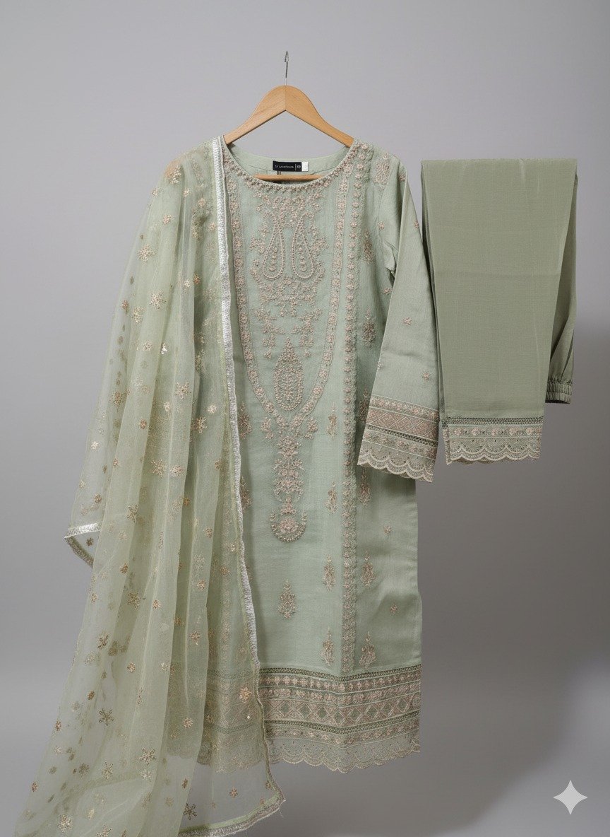 Be the first to review “SADABAHAR LUXURY FORMAL FESTIVE MAHPARA ORGANZA EMBROIDERED 3PIECE STITCHED COLLECTION 2025” Cancel reply