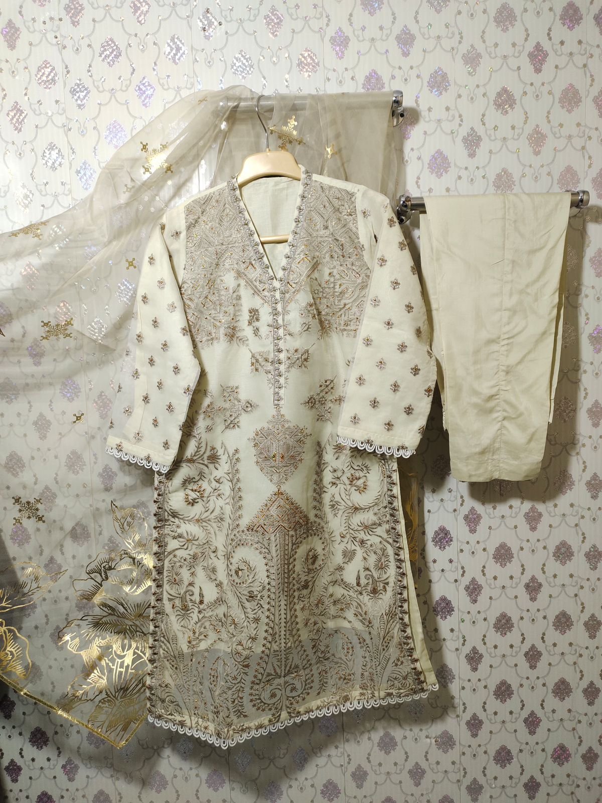 Tawakkal lawn jequard stitch shirt Fancy heavy orgenza Dupatta